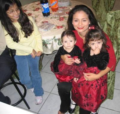 So we put Sophia in the little bouncer chair.... and she was finaly asleep when our other little angel (Megan) decided to come over and check out her new sister.